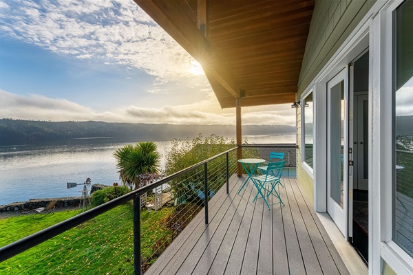 Get cozy in front of the fireplace and enjoy the heated concrete floors